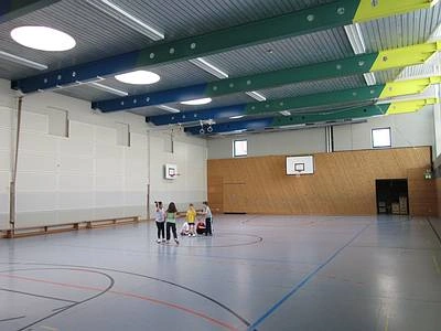 Sporthalle und Umkleidekabinen