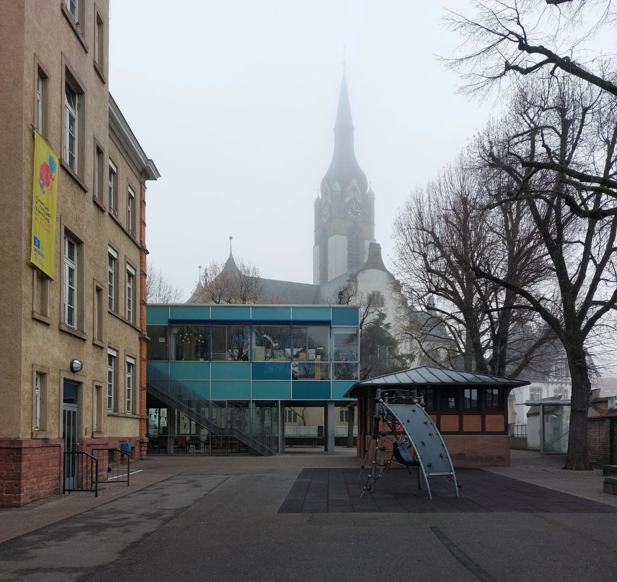 Tiefburgschule von außen mit Schulhof